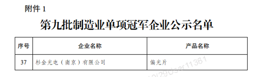 近日,江蘇省工業和信息化廳公示了工信部第九批國家制造業單項冠軍企業名單,杉金光電(南京)有限公司憑借核心產品偏光片,成功通過認定并榮獲國家級制造業單項冠軍稱號,刷新了企業在高端顯示材料領域的發展高度,標志著公司在顯示偏光片領域綜合實力獲得國家級權威認可。